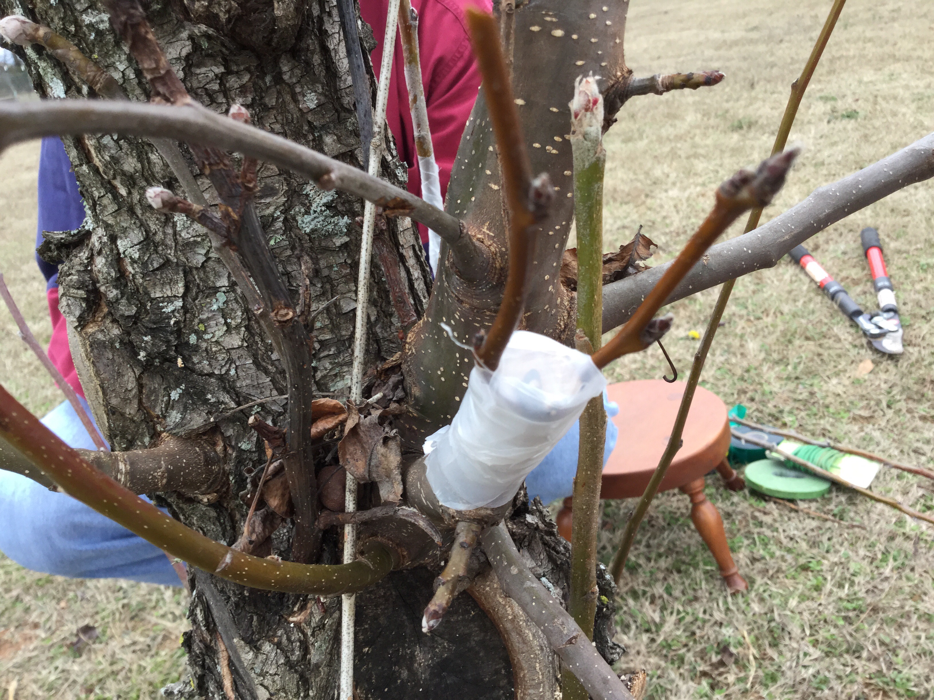 In February, I made a second attempt. This time, I enlisted a friend with training in grafting, a passion for permaculture and two pear trees that were ready for pruning. The two pear trees provided the scion wood.