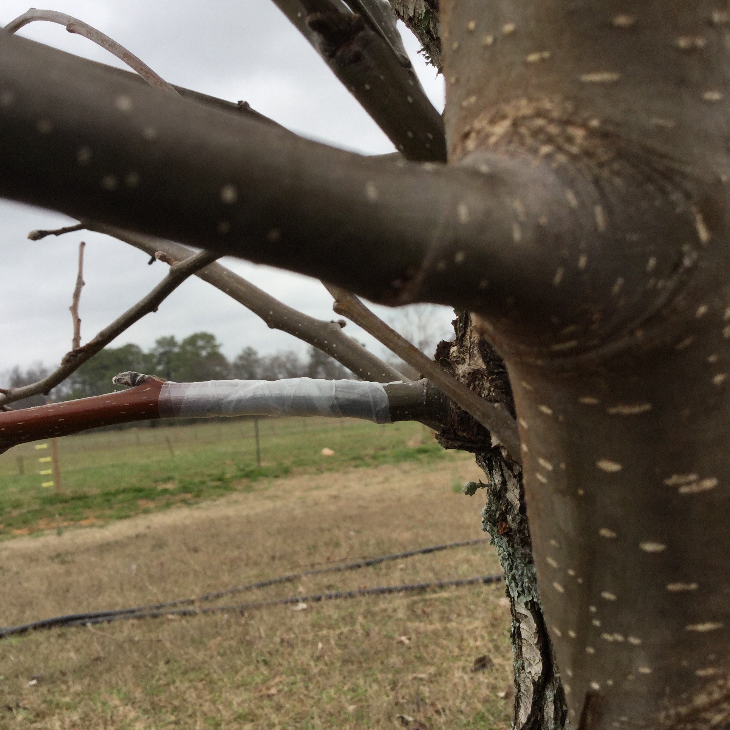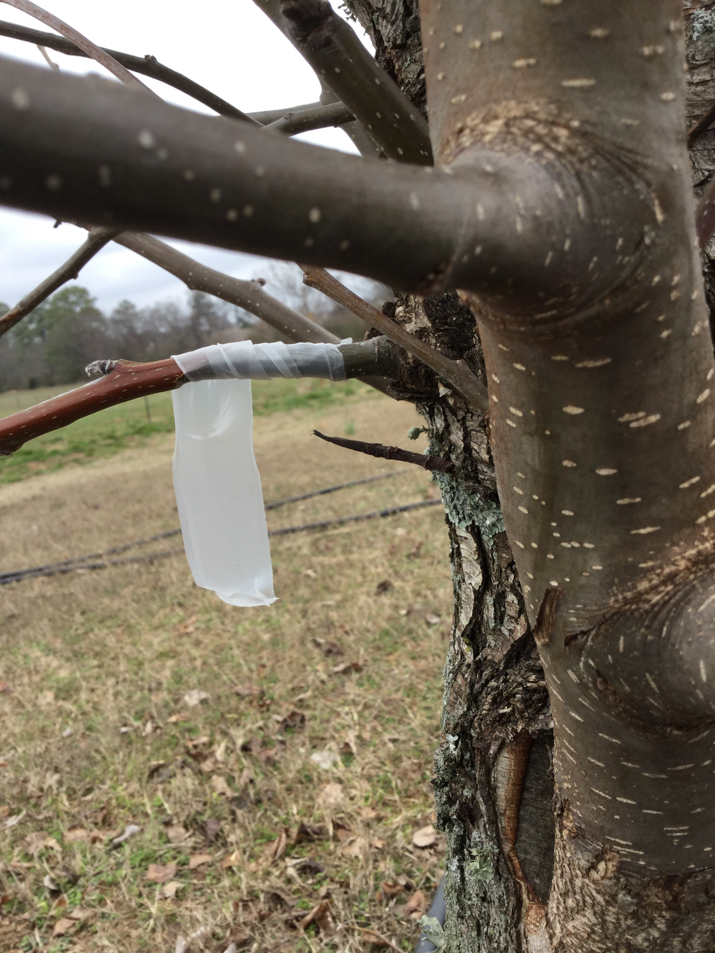 So, my first attempt was last year about this time. I tried cleft grafting. In short, I sawed off the top of the tree, used a wedge to split the top, inserted a piece of scion wood, covered with wound paint and hoped for the best. Unfortunately this resulted in 100% failure. Fortunately I didn’t kill the trees, providing a second chance.